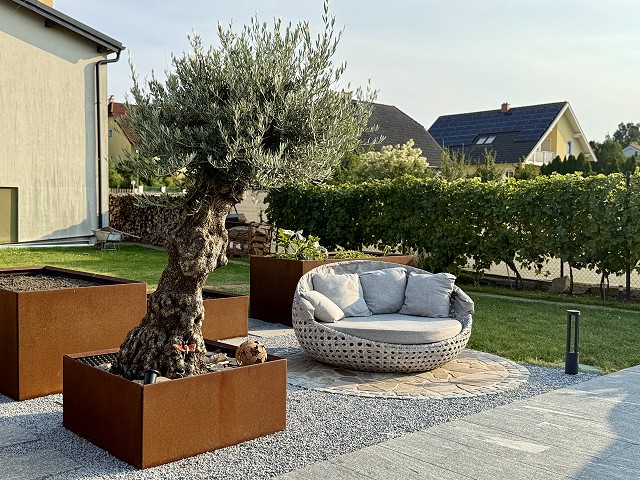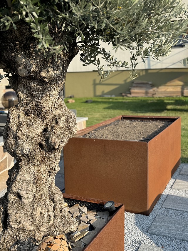 Květináče umíme vyrobit ze speciální oceli. Díky ní postupem času získávají patinu, která je ochrání před dalším poškozením.