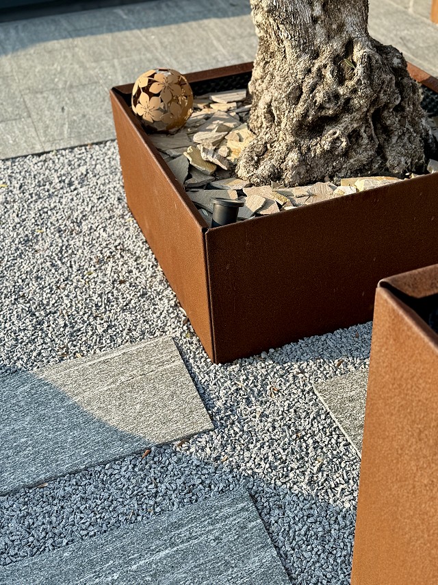 Květináče vyrábíme z konstrukční nebo CorTen oceli. Každý materiál má své specifické výhody a použití:
